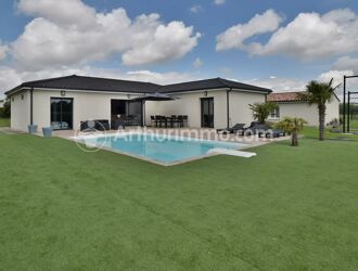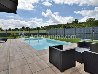 La maison dispose de trois chambres, dont une suite parentale de 20 m², d’un garage de 25 m², d’une grande terrasse de 70 m² et d’un terrain de 686 m² avec piscine, dans un environnement calme.