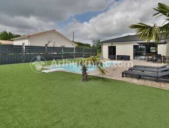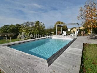 Un jardin d'environ 150 m² accueille une piscine et une terrasse, créant un véritable havre de détente. Un cadre idéal pour des repas d’été, des après-midis en famille ou simplement pour se ressourcer.